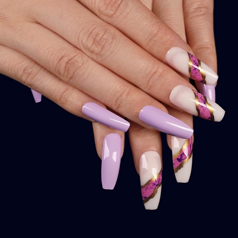 24pcs Dizzy Gold Powder Purple Ballet Manicure Patch False Nails Walmart Com